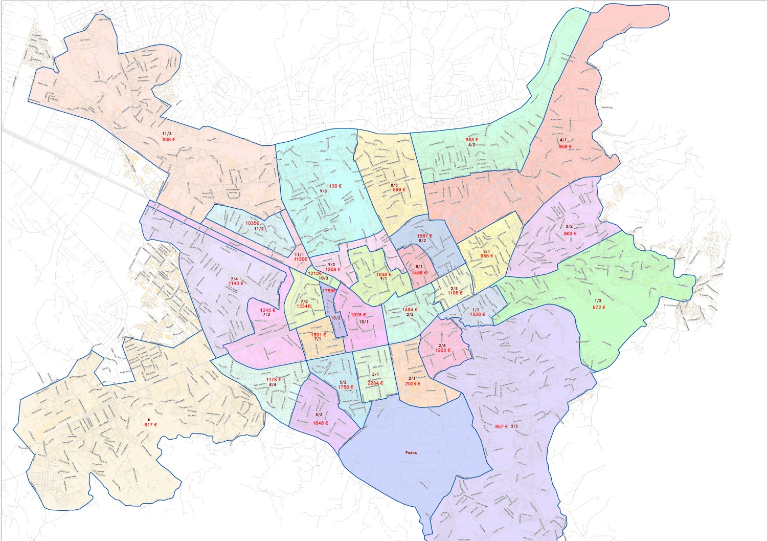 | Pezë | 858 € /m2 | 535 € /m2 |